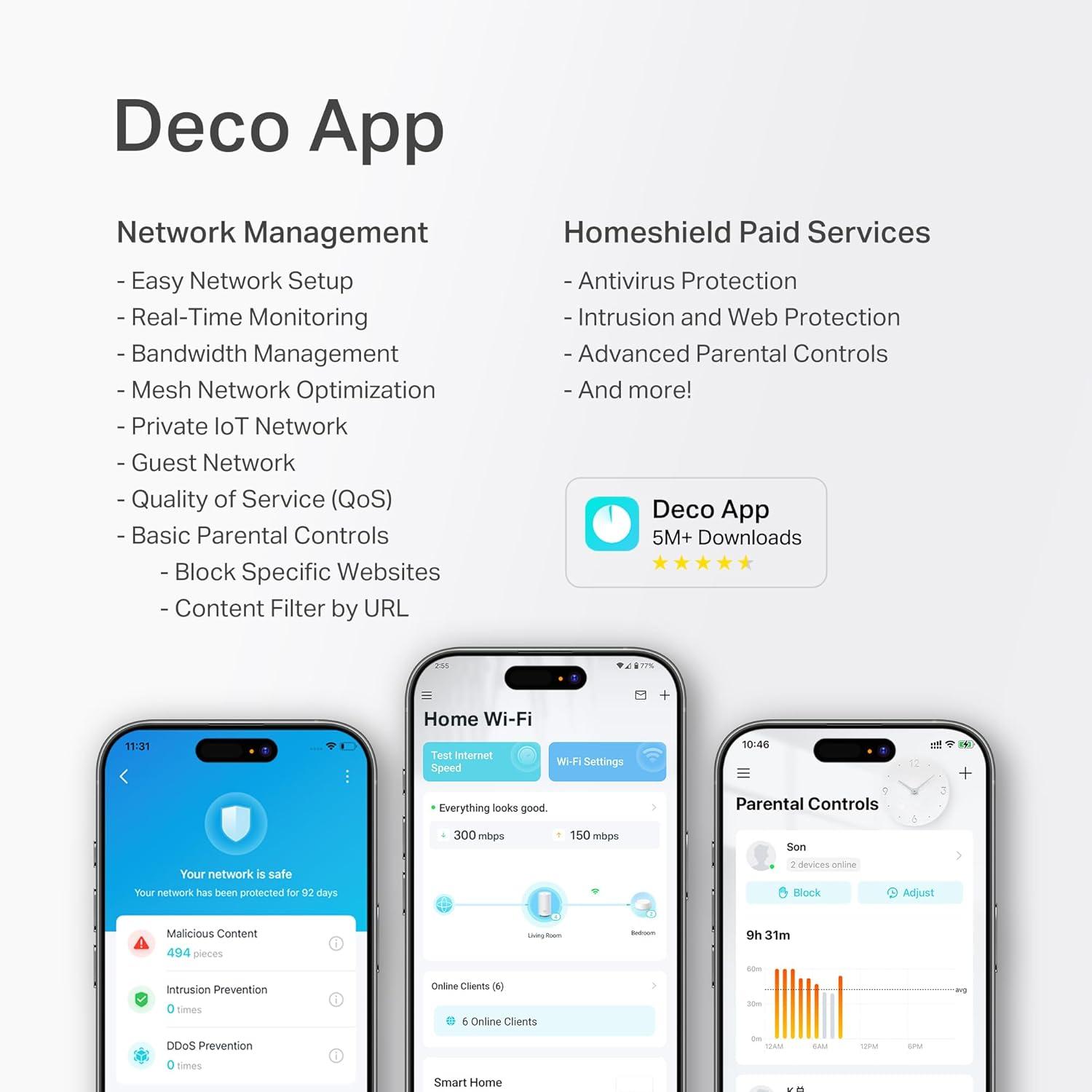 𝐄𝐱𝐭𝐞𝐧𝐝 𝐅𝐚𝐬𝐭 𝐖𝐢-𝐅𝐢 𝟕 𝐎𝐮𝐭𝐝𝐨𝐨𝐫𝐬 – The Deco Mesh WiFi System creates a single unified network, with each unit working together to automatically connect your devices to the fastest Deco as you move. Covers up to an additional 2,800 sq. ft. for up to 150 devices with seamless, high-performance Wi-Fi, eliminating dead zones and buffering.